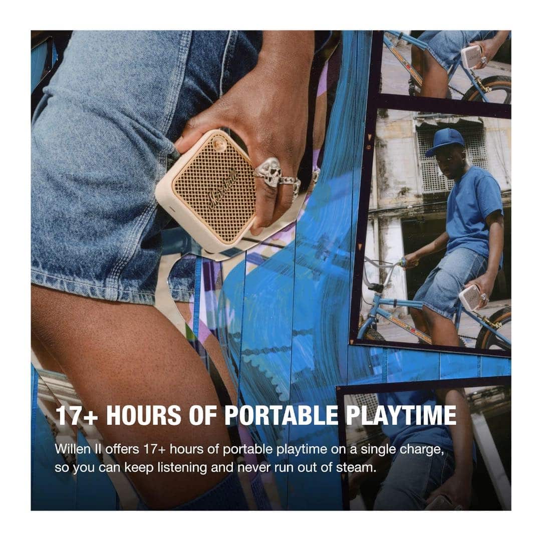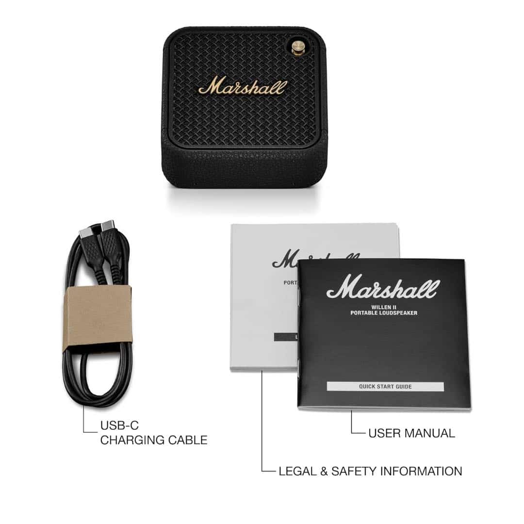 The Marshall Willen II Bluetooth Portable Speaker delivers bold sound in a pocket-sized design. With its signature Marshall look, durable build, and powerful audio performance, it’s the ultimate companion for music lovers on the move. Whether indoors or outdoors, this speaker ensures your playlist hits with clarity, punch, and style.