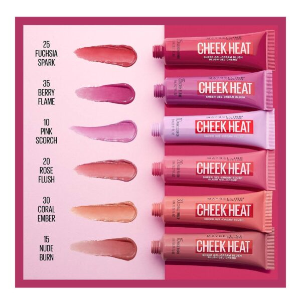 Add a pop of rosy glow with Maybelline Cheek Heat Gel Cream Blush! This lightweight gel formula melts into your skin for a natural, dewy finish that feels breathable and fresh. Perfect for that effortless, everyday flush of color.