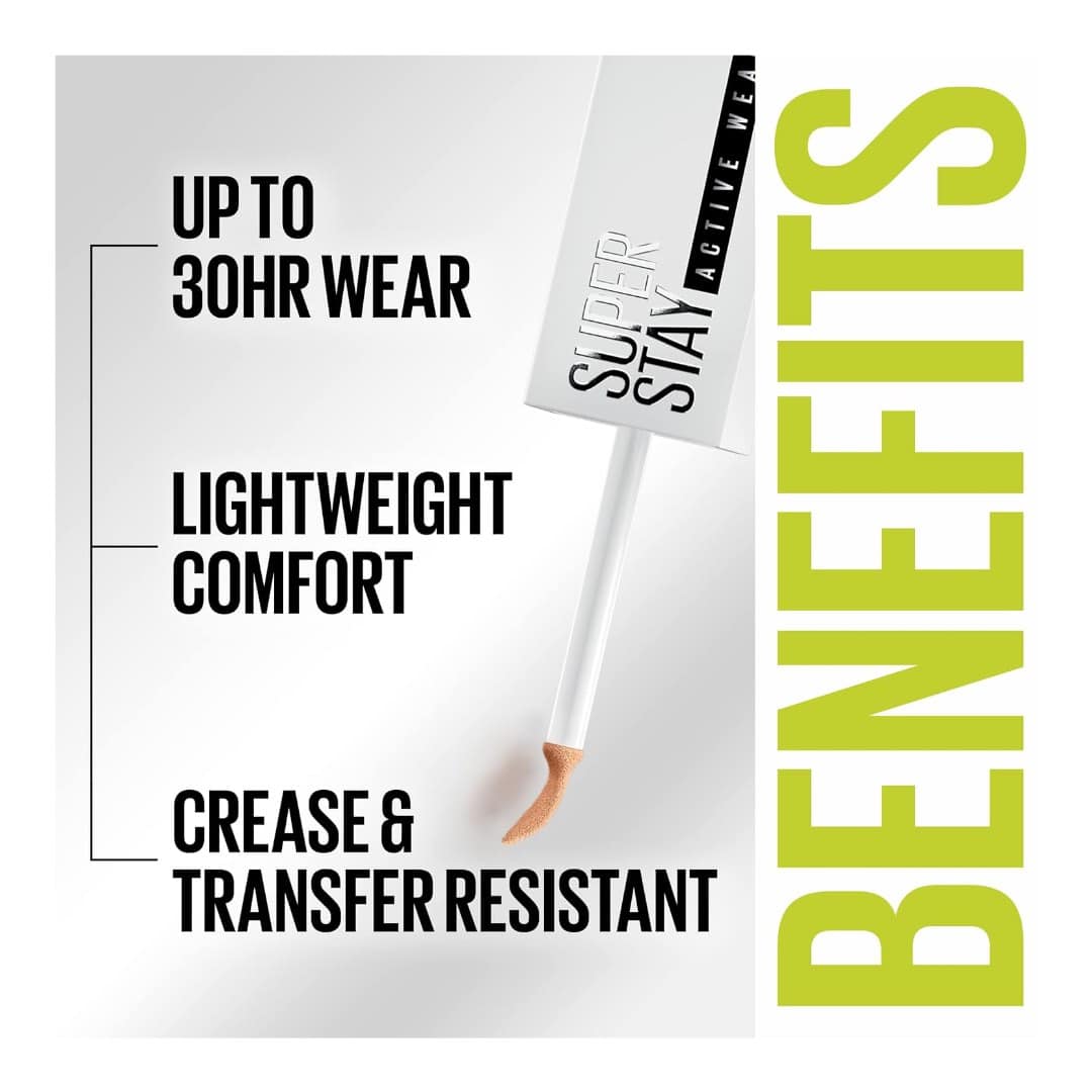 Unstoppable coverage meets all-day confidence with the Maybelline Super Stay 30H Liquid Concealer. Designed for those who want flawless skin that lasts, this full-coverage formula hides blemishes, dark circles, and imperfections with a smooth, natural matte finish. Lightweight yet powerful, it stays put through sweat, humidity, and long daysโkeeping your look fresh and shine-free. Perfect for any skin type, this oil-free concealer blends effortlessly and delivers comfort you can trust.