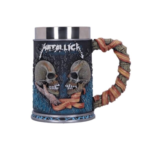 The Nemesis Now Metallica Sad But True Tankard is an officially licensed collectible inspired by the legendary artwork of Metallicaโs longtime designer, Pushead. This striking tankard features an intense sculptural design with two fanged skulls facing each other, one supported by a human hand that appears to shred apart before forming a solid base. The torn Metallica logo crowns the tankard as shards of glass explode around it, capturing the raw power and aggression of the bandโs iconic Sad But True imagery. Expertly hand-painted and crafted from high-quality resin, this tankard is a bold tribute to one of the most influential heavy metal bands in history.