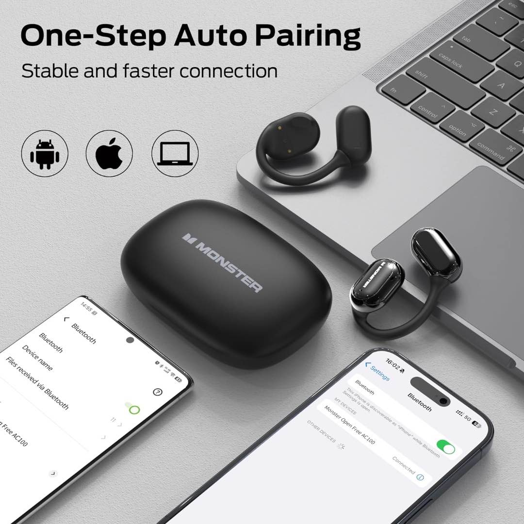 Experience music like never before with the Monster Open Free AC100 Open-Ear Headphones. Designed with advanced air conduction technology, these earbuds sit comfortably outside your ear canal, delivering immersive, high-fidelity sound without causing ear fatigueโeven during long listening sessions.