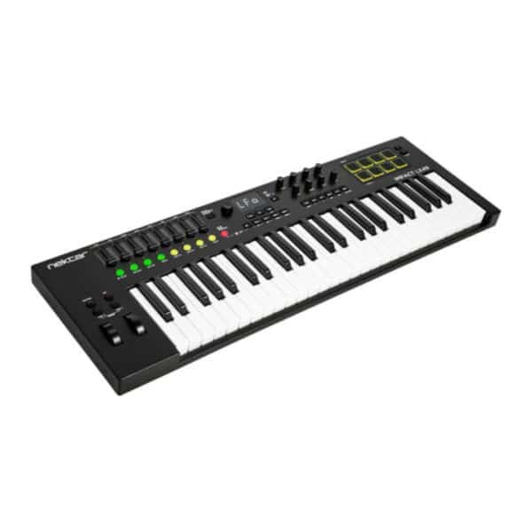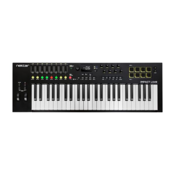 Engineered to provide a customized, DAW-integrated workflow that enhances both performance and production, the Nektar Impact LX49 mk3 is a 49-key MIDI controller with a reengineered keybed that offers expressive, clean action with a refined velocity response, full-resolution encoders, and color LED buttons that support intuitive parameter control and DAW navigation.