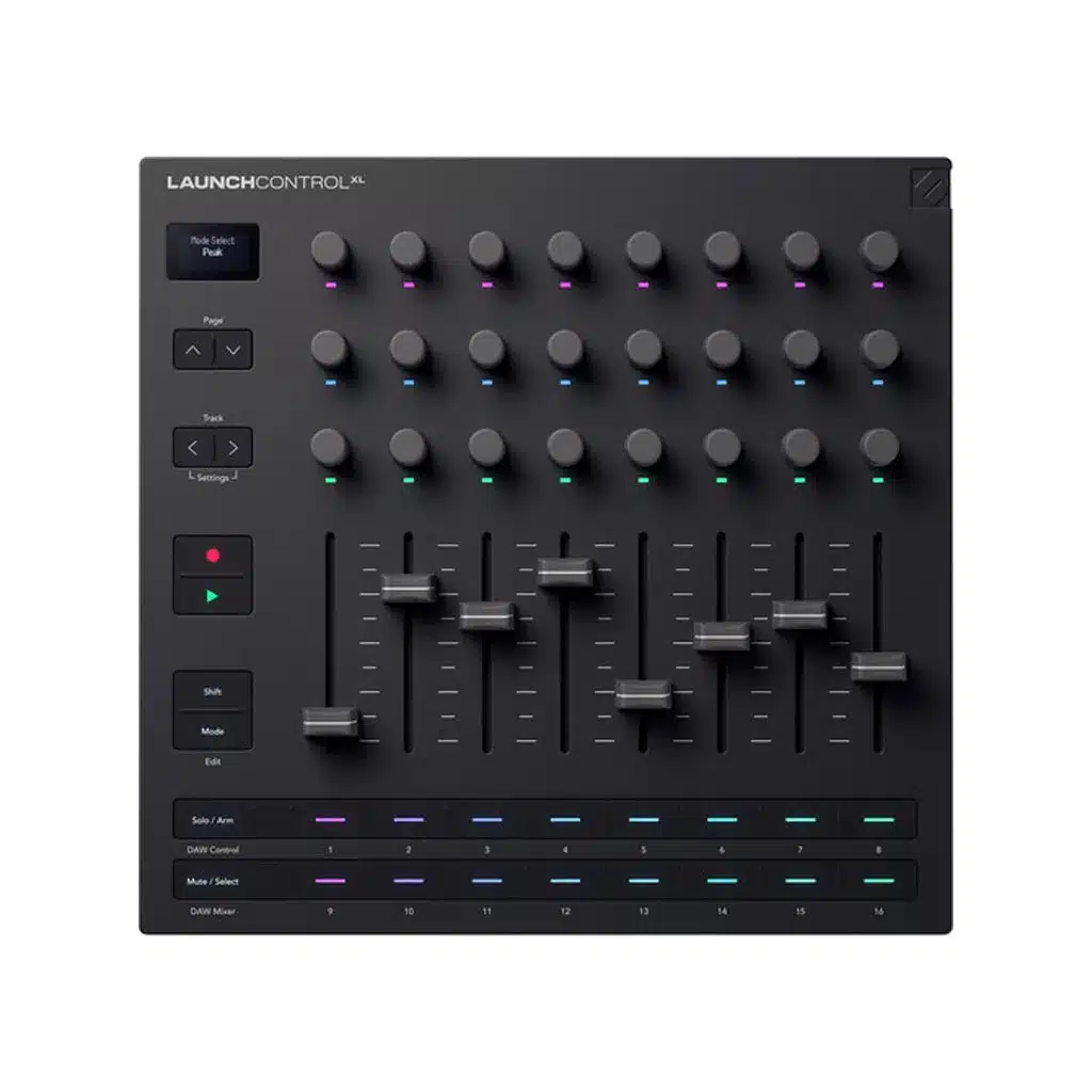 Redesigned from the ground up, the latest Launch Control XL 3 now features eight precise faders, 24 endless rotary encoders, and 16 customizable buttons, alongside dedicated transport controls. A crisp, new OLED display shows you vital, real-time information, right where you need it.