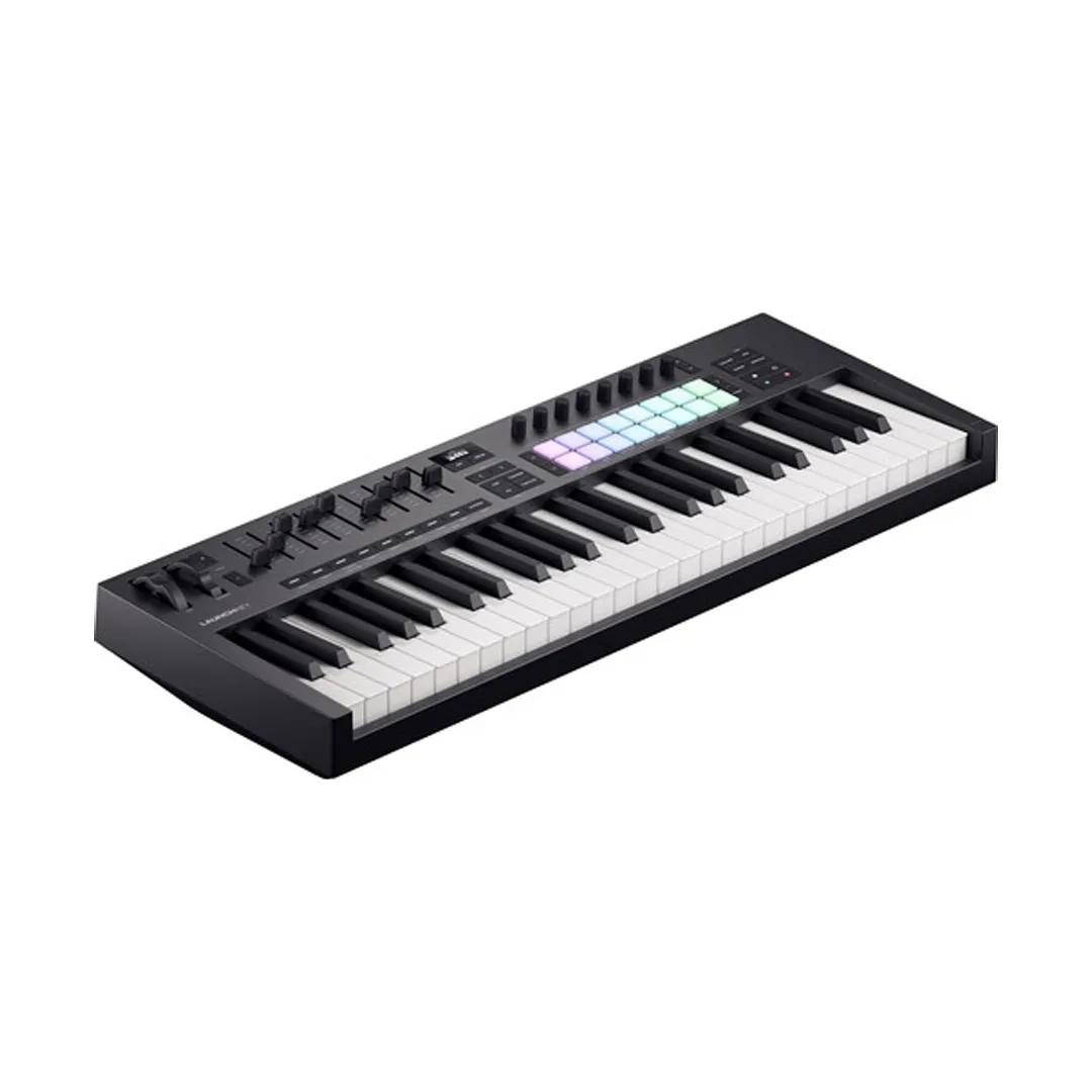 The 49-note waterfall keyboard is expressive, musical, and a joy to play. Semiweighted keys and velocity sensitivity ensure a natural and articulate playing experience. For finger-drummers, Launchkey now sports Novationโs patented velocity-sensitive FSR drum pads with polyphonic aftertouch.