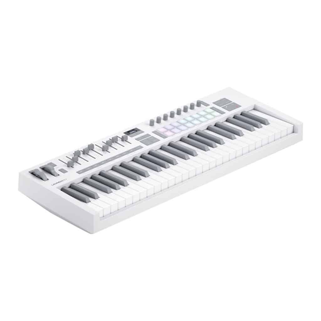 The 49-note waterfall keyboard is expressive, musical, and a joy to play. Semiweighted keys and velocity sensitivity ensure a natural and articulate playing experience. For finger-drummers, Launchkey now sports Novation’s patented velocity-sensitive FSR drum pads with polyphonic aftertouch.Unlike standard pads, each one features a unique radial sensor that increases sensitivity and improves consistency for even tighter performances. They can also be set to trigger chords or individual notes with polyphonic aftertouch.