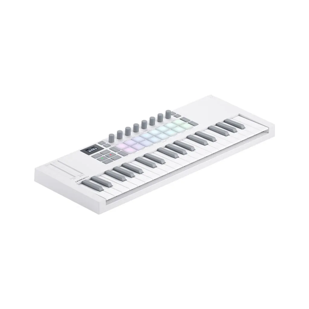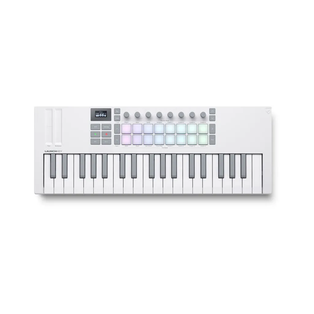 Further control features include buttons for pad page, scene launch, function, encoder page, capture MIDI, undo, quantize, and metronome, octave up and down, and full transport controls. View what chord youโre playing in real time with the OLED display, lock the notes on your keyboard into a specific musical key, activate three chord modes (Fixed Chord, User Chord, and Chord Maps), and utilize the powerful and programmable internal arpeggiator. Versatile connectivity lets you connect to MIDI gear via 5-pin DIN, computers, and smart devices via USB-C, and sustain pedals via 1/4โณ. Like all Launchkey products, Launchkey Mini 37 includes a suite of powerful software to facilitate creation right out of the box.