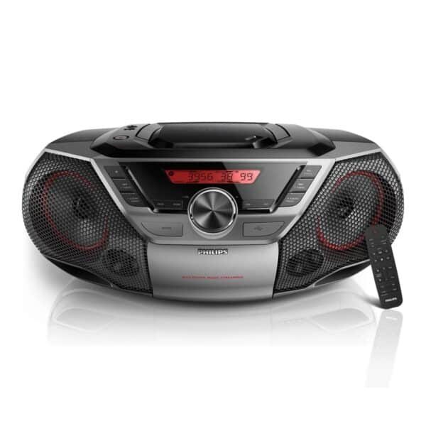 Take your music anywhere with the Philips Portable Boombox, designed for those who love deep beats, crisp sound, and versatile playback options. With Bluetooth, NFC, and USB support, this sleek sound system combines modern convenience with powerful stereo performance, perfect for both indoor vibes and outdoor fun.