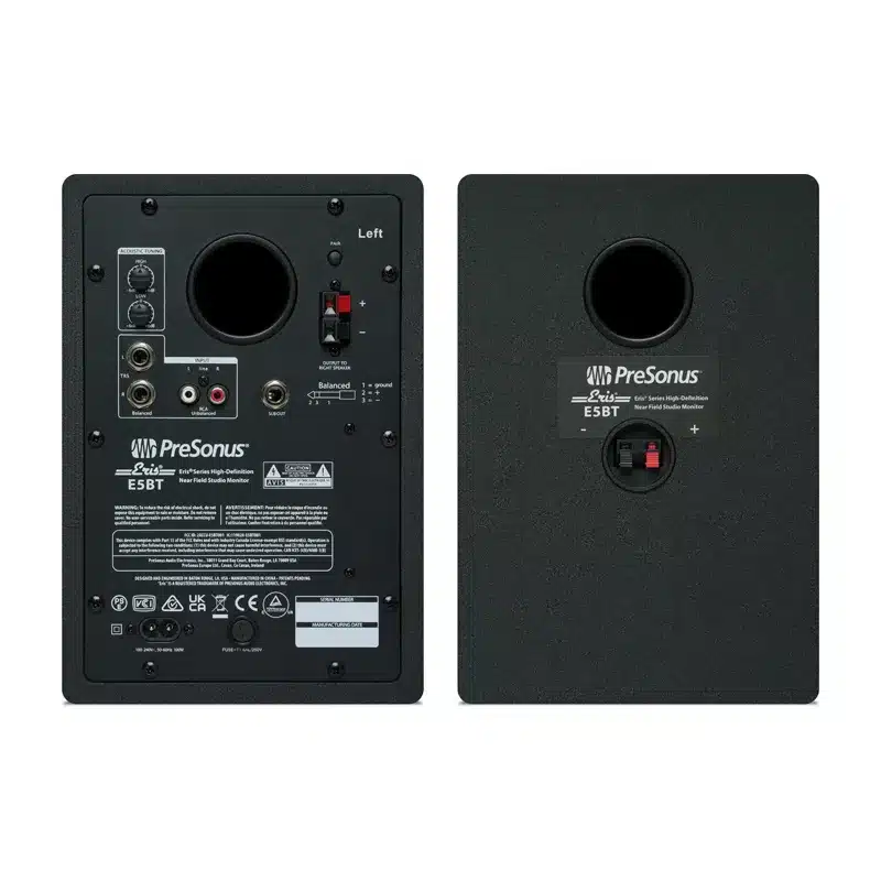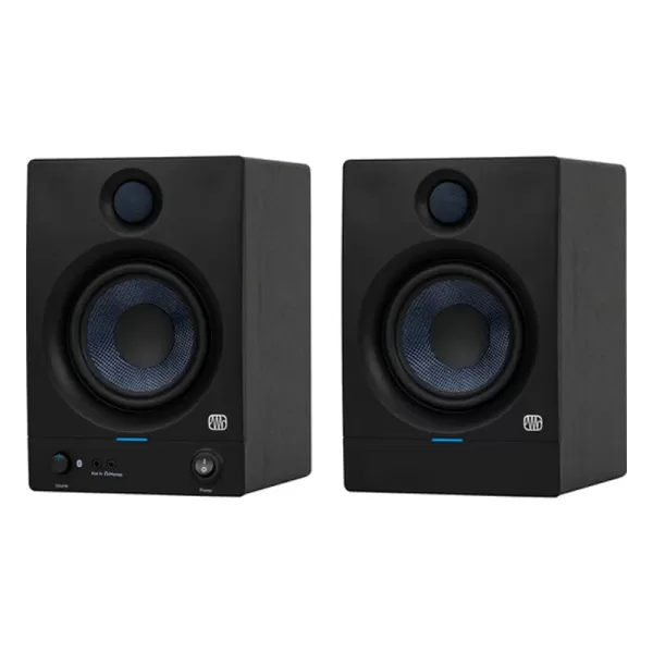 Designed for content creators, gamers, and mixing engineers, this pair of PreSonus Eris 5BT Active Media Reference Monitors with Bluetooth provide a clear, accurate frequency response and a wide variety of inputs. These high-quality monitors utilize 5.25โณ woven composite woofers and 1โณ silk-dome tweeters for a balanced sound across its 55 Hz to 20 kHz frequency range. You can input sound to the monitors over 1/4โณ TRS jacks, unbalanced RCA inputs, a 3.5mm auxiliary input, and Bluetooth 5.0 streaming. Whether youโre monitoring from an audio interface, a computer output, a receiver, or a mobile device, these monitors can accommodate you.