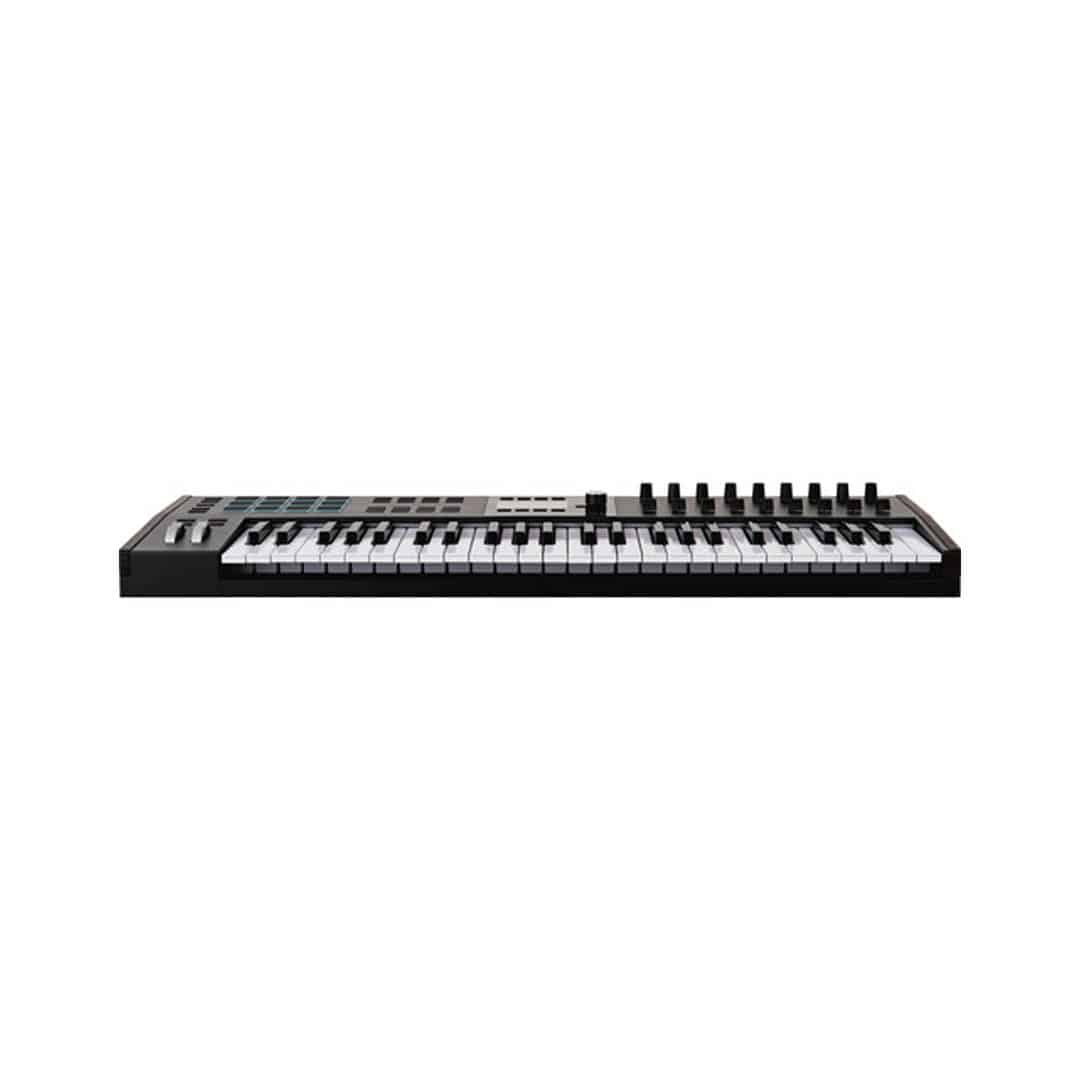 Several creative enhancements have been added including an arpeggiator, scale mode, and chord play. The system is designed to provide 1:1 control of the included Analog Lab software, Ableton Live Lite, and Native Instruments The Gentleman virtual-instrument software, as well as any MIDI-controllable plug-in or DAW, including Ableton Live, FL Studio, Logic Pro, Cubase, and Bitwig Studio. The controller is USB powered and includes a USB-C cable.