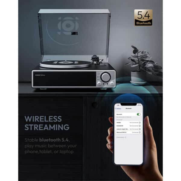 • All-in-One Design: Integrated speakers, phono preamp, and Bluetooth 5.4 for wired or wireless playback from smartphones or tablets.