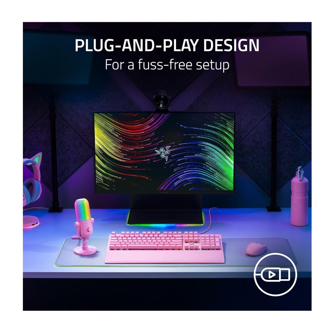 Level up your streaming and gaming with the Razer Seiren V3 Chroma in Quartz Pink. Designed with vibrant reactive RGB lighting and crystal-clear condenser audio, this mic ensures you sound professional while standing out on screen. Built for creators and gamers, it combines performance, style, and functionality in one sleek package.