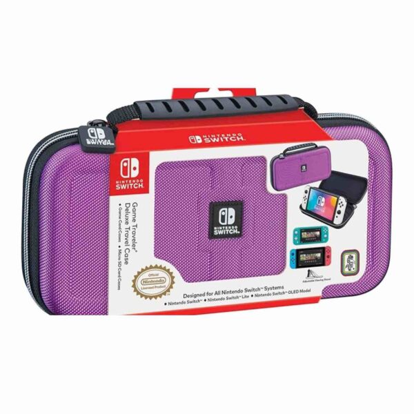 Take your Nintendo Switch gaming anywhere with confidence and style. The RDS Officially Licensed Deluxe Case is built to protect your Switch OLED, Switch, or Switch Lite with a durable design, smart storage, and versatile functionality. Featuring a bold purple ballistic nylon exterior, this #1 selling case in the USA keeps your console and games safe while doubling as a viewing stand for on-the-go play.