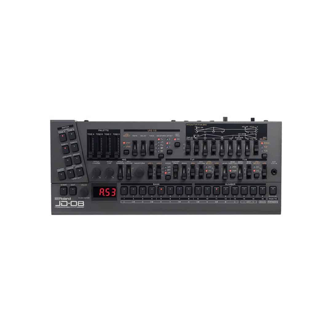 The JD-08 module features all the unique sounds of this highly sought-after classic, in stunning detail, and includes 64 presets from the original hardware that perfectly recreates the four-tone structure, 108 waveforms, and unique two-part multi-effects that are at the core of the JD-800โs intricate, evolving sound. The module features the multi-phase time variant envelopes for complex, evolving sounds and a detailed recreation of the original two-stage multi-effects section with editable distortion, phaser, spectrum, enhancer, delay, chorus, and reverb.