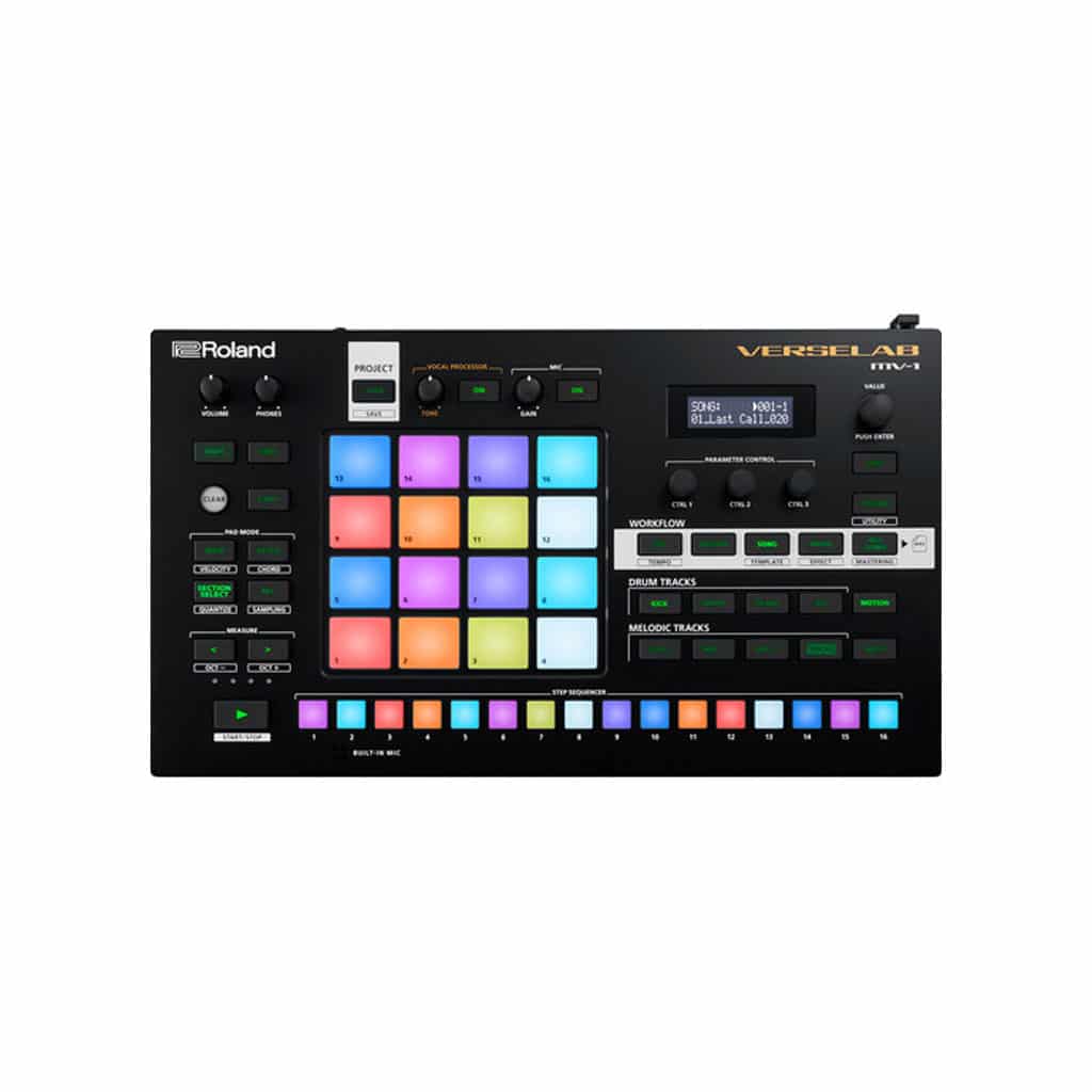 The Roland VERSELAB MV1 is a complete, all-in-one, portable music workstation specifically designed to help musicians and producers focus on completing entire songs and compositions. In addition to being packed with a host of powerful tools for producing beats and vocals, the VERSELAB also offers a uniquely fluid workflow, filled with creative tools to inspire your writing and help you bring your musical ideas to fruition.
