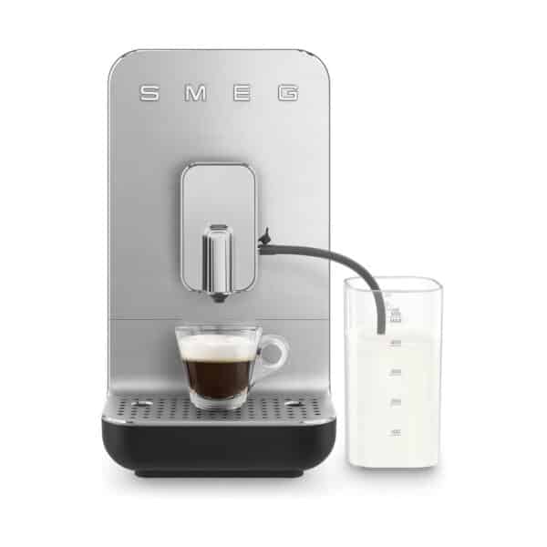 Experience barista-quality coffee with this fully automatic machine, Designed by SMEG, a renowned Italian company. Built-in grinder with adjustable settings and a milk system that delivers perfect foam for every cup, offering versatile drink options from espresso to lattes. Features flashing alerts and acoustic signals for superior performance while maintaining efficiency with auto-shutoff after 30 minutes of inactivity.