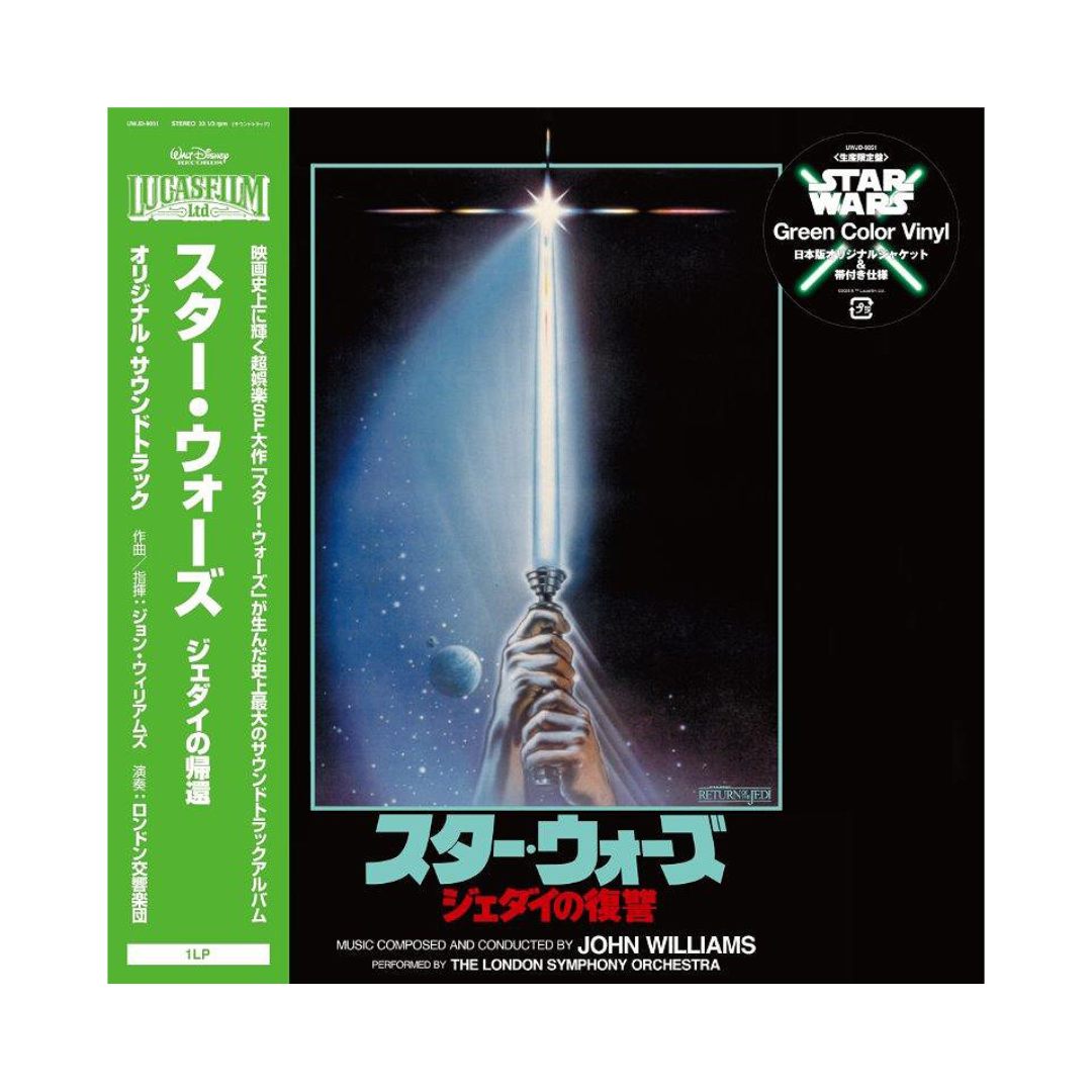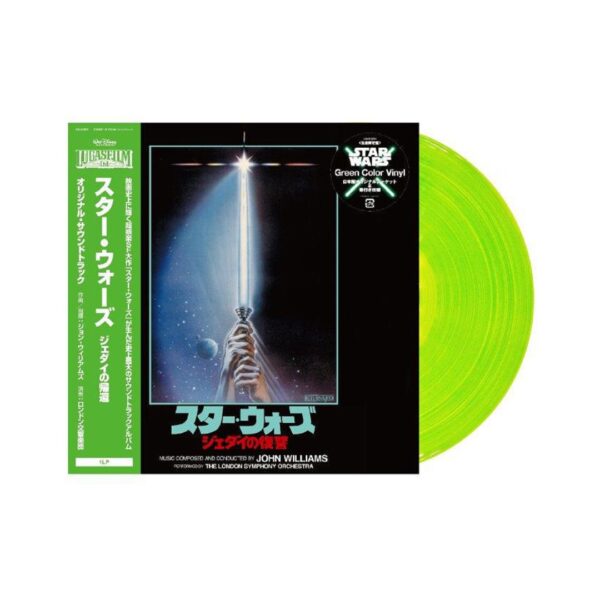 A Japanese vinyl edition of the original soundtrack for “Star Wars / Return of the Jedi” is released as a completely limited production! It comes with a Japan original jacket and an obi, and the record is released on green-colored vinyl for the first time! The original soundtrack for “Star Wars Episode 6 / Return of the Jedi” released in Japan in July 1983 (directed by Richard Marquand). Composed by John Williams. It includes “Lapti Nek,” “Ewok Parade,” and “Ewok Celebration,” which are used in the film at the time of release but are no longer used from the 1997 Special Edition. You can also hear “The Emperor’s Theme” and “Luke and Leia.” Based on the 1983 soundtrack, Shawn Murphy and Skywalker Sound remaster the audio sources, and it adopts the 192kHz / 24bit master released in 2018. Japan original project. *Because the album jacket design uses poster art from the time of the theatrical release, the Japanese title notation differs from the current one.