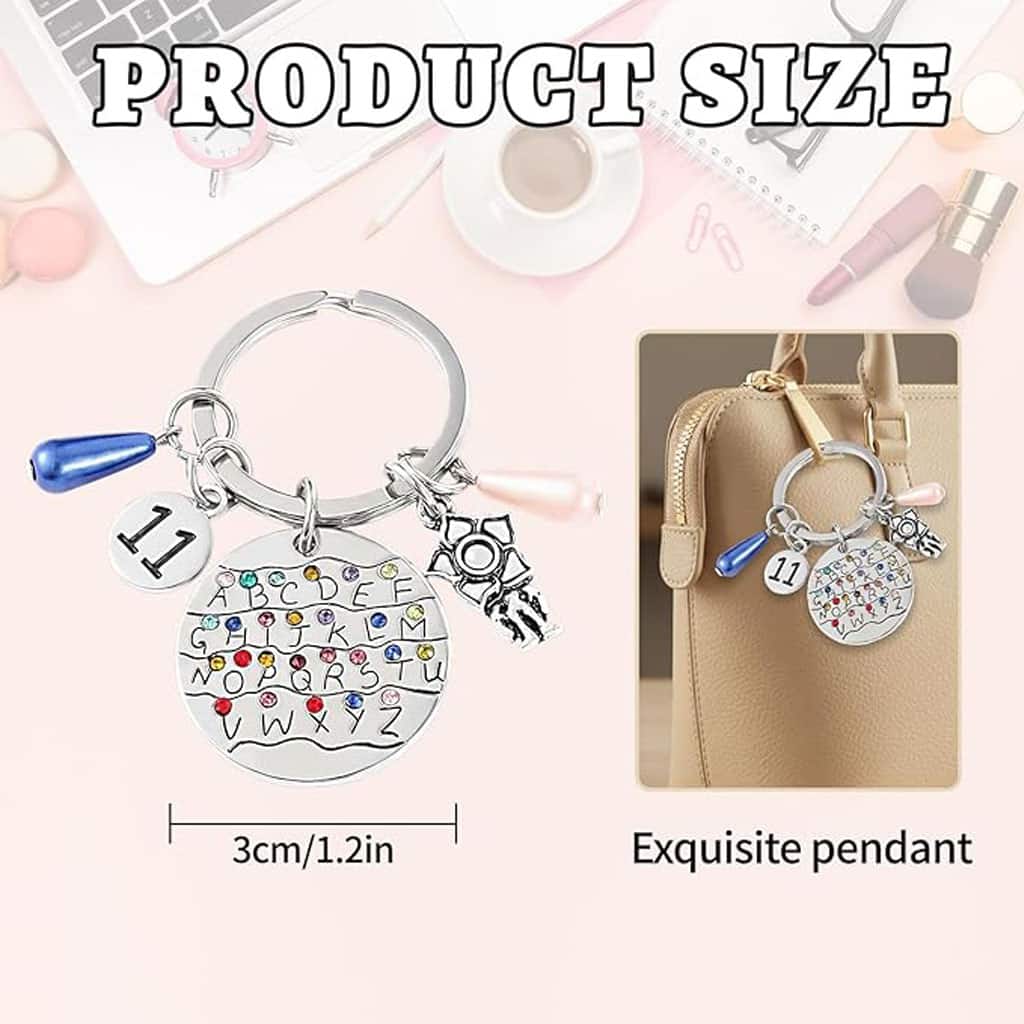The design includes a round alphabet charm, a metal โ11โ tag, and themed accent charms that add character and movement. Crafted from durable metal alloy, it offers both style and everyday functionality. Lightweight yet sturdy, itโs perfect for keeping keys organized while showcasing your love for the series.
