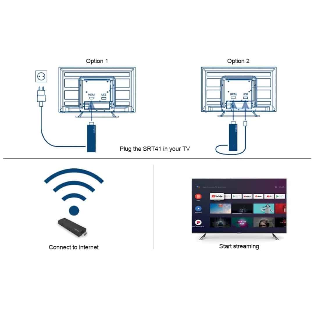 With Google Assistant voice control, the included remote makes browsing, streaming, and controlling your TV easier than everโsimply press and ask. Stream your favorite content from popular services like Netflix, YouTube, Prime Video, and Disney+, or explore thousands of apps directly from the Play Store. Compact, lightweight, and powerful, the SRT41 is the all-in-one solution for modern entertainment.