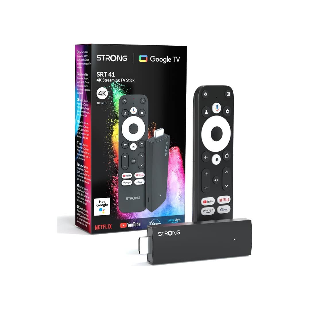 The Strong SRT41 TV Stick transforms any TV into a smart entertainment hub. Powered by Google TV with Android 11, it gives you direct access to the Google Play Store, where you can download countless apps, games, and streaming services. Enjoy smooth 4K UHD playback with H.265 decoding, dual-band Wi-Fi, and built-in Chromecast for seamless casting from your smartphone, tablet, or computer.
