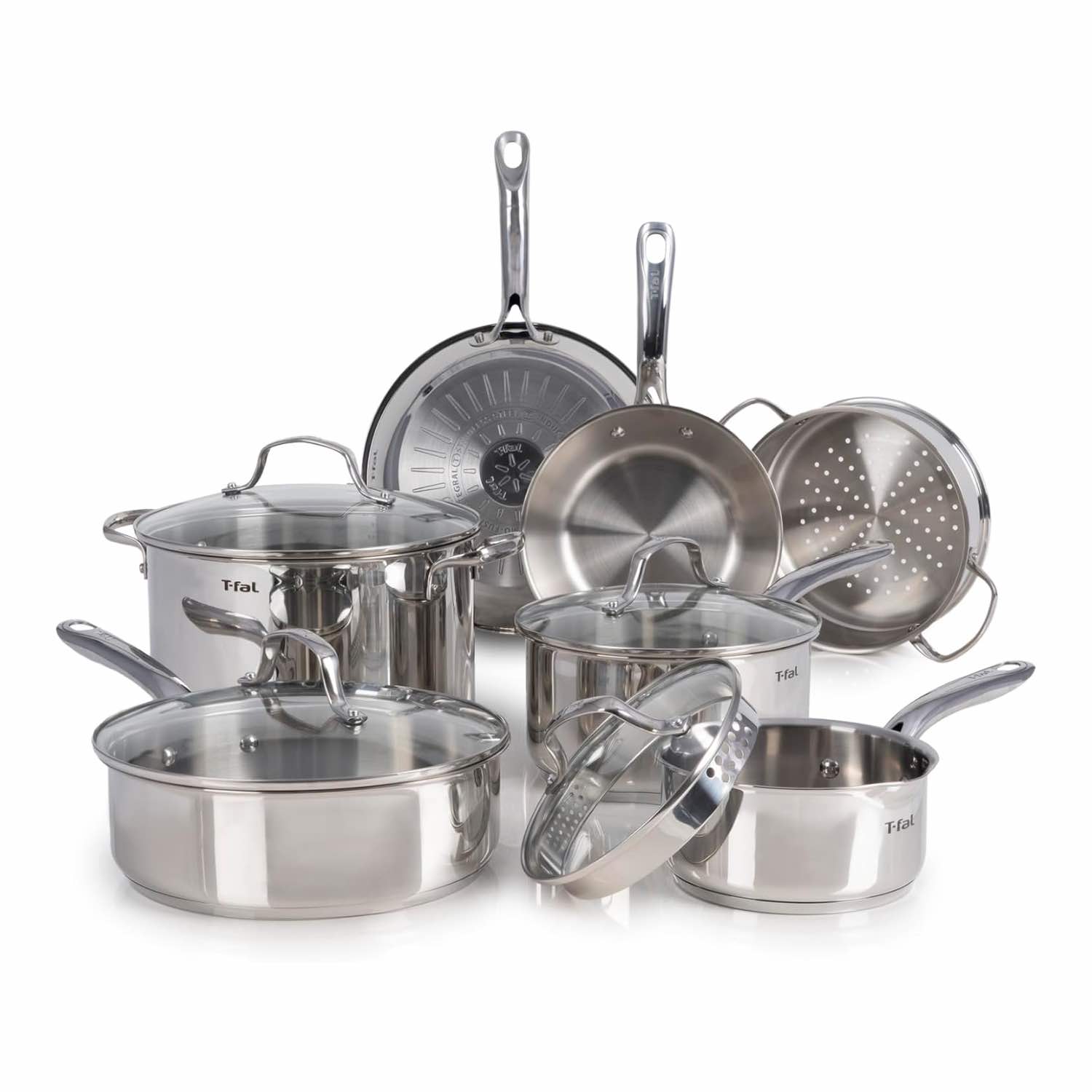 Cook like a pro with the T-fal Stainless Steel 11-Piece Cookware Set, designed for durability, performance, and everyday convenience. This sleek silver set combines timeless style with modern features, making it perfect for home cooks and food lovers alike. With pots, pans, and a steamer all crafted from quality stainless steel, youโll enjoy fast, even heating and reliable results for every recipe. Safe for induction, oven, broiler, and dishwasherโthis is the ultimate set to elevate your kitchen.