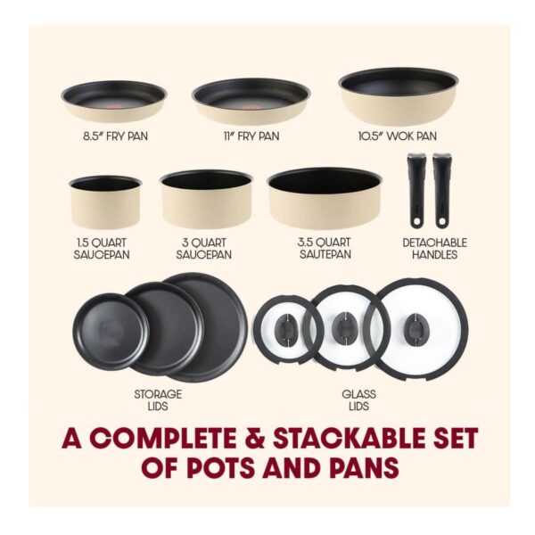 Bring smart cooking to your kitchen with the T-fal Ingenio Expertise Non-Stick Cookware Set. Designed for ultimate versatility, this 14-piece collection is stackable, easy to handle, and crafted for everything from stovetop meals to oven-baked creations. With its detachable handle, superior non-stick coating, and stylish French Vanilla finish, itโs the perfect blend of performance and elegance for home kitchens, RVs, or camping adventures.