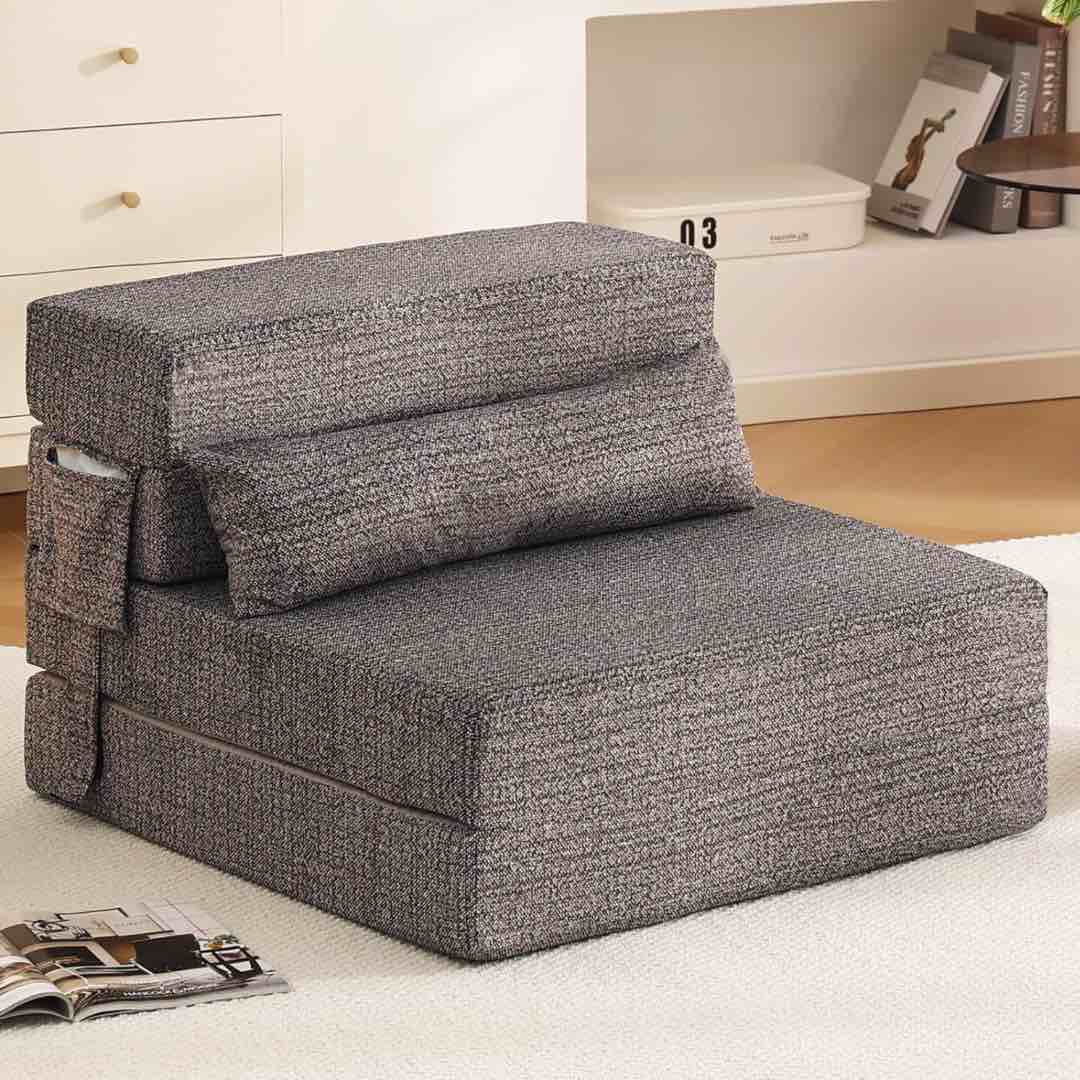 Tiita Folding Sofa Bed Couch โ Single Size Futon Chair with Pillow (Grey)