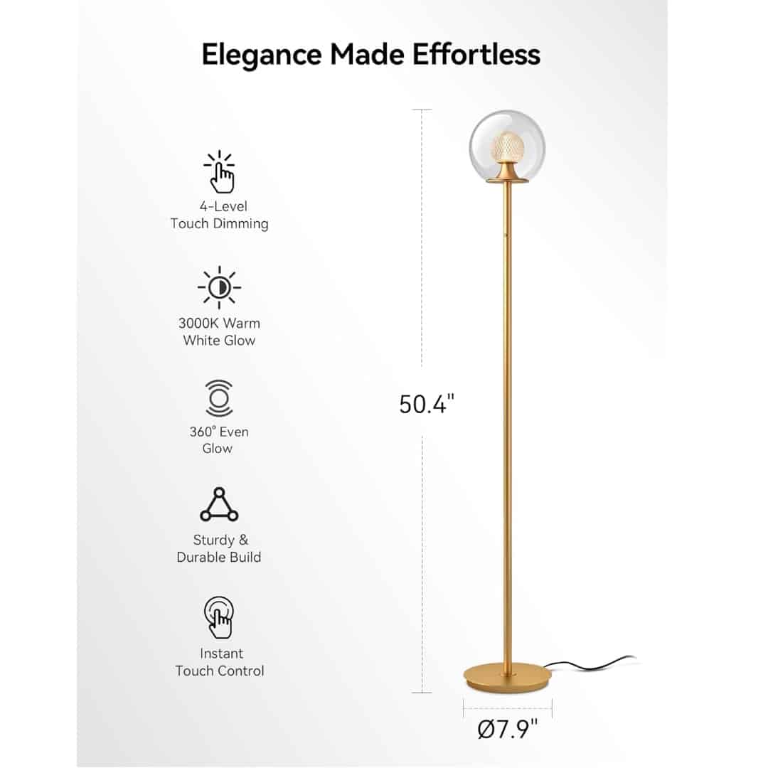 - Compact and Versatile: Stands 50.4 inches tall, perfect for corners, bedside use, or living room accent lighting.