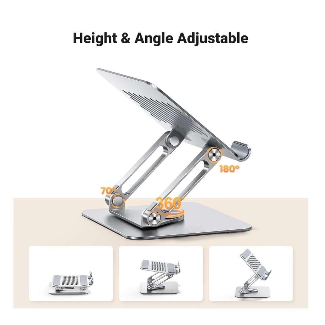 Sleek and sturdy, the UGREEN Tablet Stand Holder brings premium style and functionality to your desk. With a smooth 360° rotating base and adjustable angles, it’s built for effortless viewing, video calls, and multitasking at home or the office.