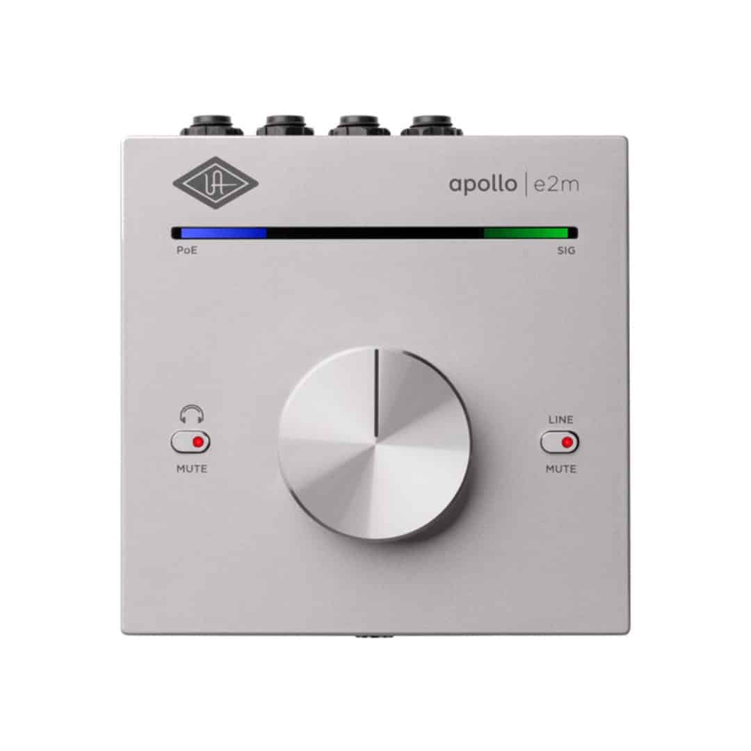 The e2m stereo headphone amplifier and line interface is the perfect companion to your Apollo x16D interface, and a sleek endpoint on any Dante audio network. This networked monitor station lets you easily connect headphones, IEMs, powered monitors, or wedges, as well as synths, drum machines, or playback devicesโanywhere you need them.