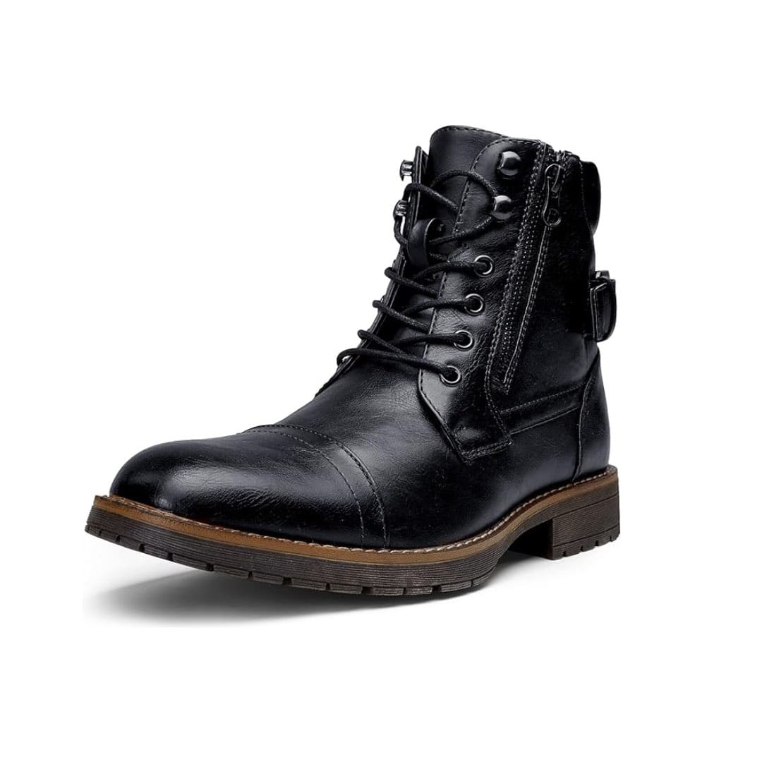 Upgrade your footwear collection with Vostey Menโs Casual Combat Motorcycle Boots, designed to deliver a perfect balance of rugged durability and modern style. These ankle boots feature a sleek lace-up design combined with an inner zipper for easy wear, making them ideal for daily use, riding, work, or casual outings. With a polished finish and classic cap-toe silhouette, these boots effortlessly transition from casual to dressy looks while maintaining all-day comfort.