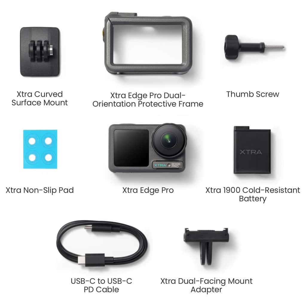 - Bundle Accessories โ Comes with a Dual-Facing Mount Adapter, Cold-Resistant Battery, and Dual-Orientation Protective Frame for flexible and reliable shooting setups.